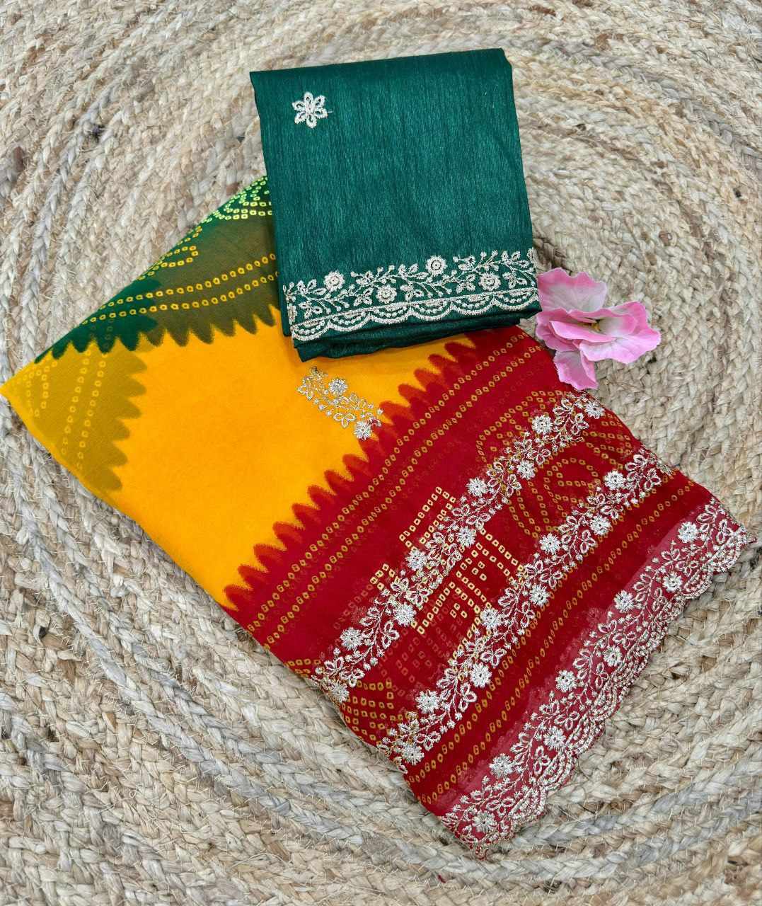 | Name : | PIYU P1052 LERIYA BANDHANI-1 Yellow-Red Saree |