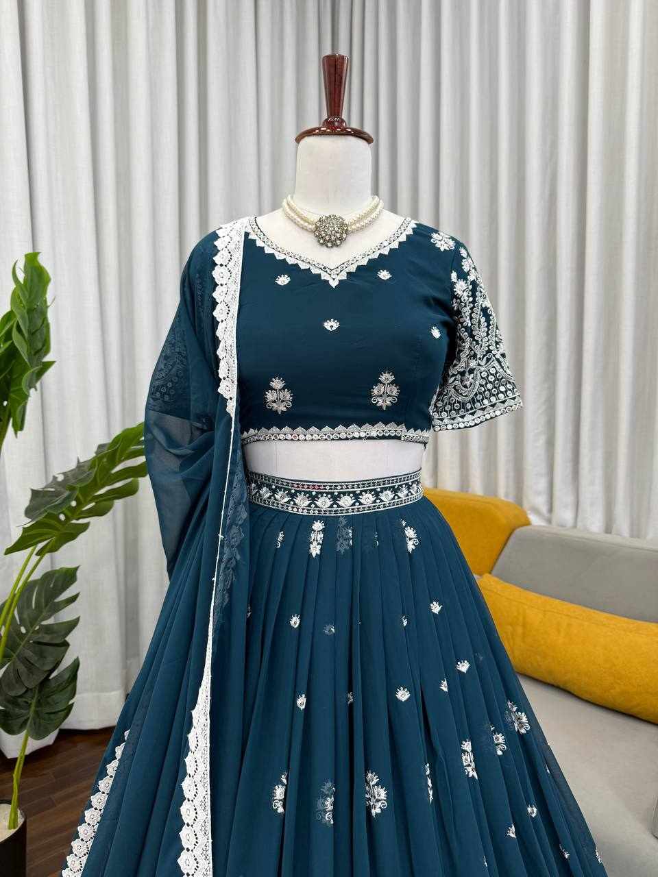 | Name : | QRC 382 Beautifual Teal Blue Heavy Designer Lehenga |