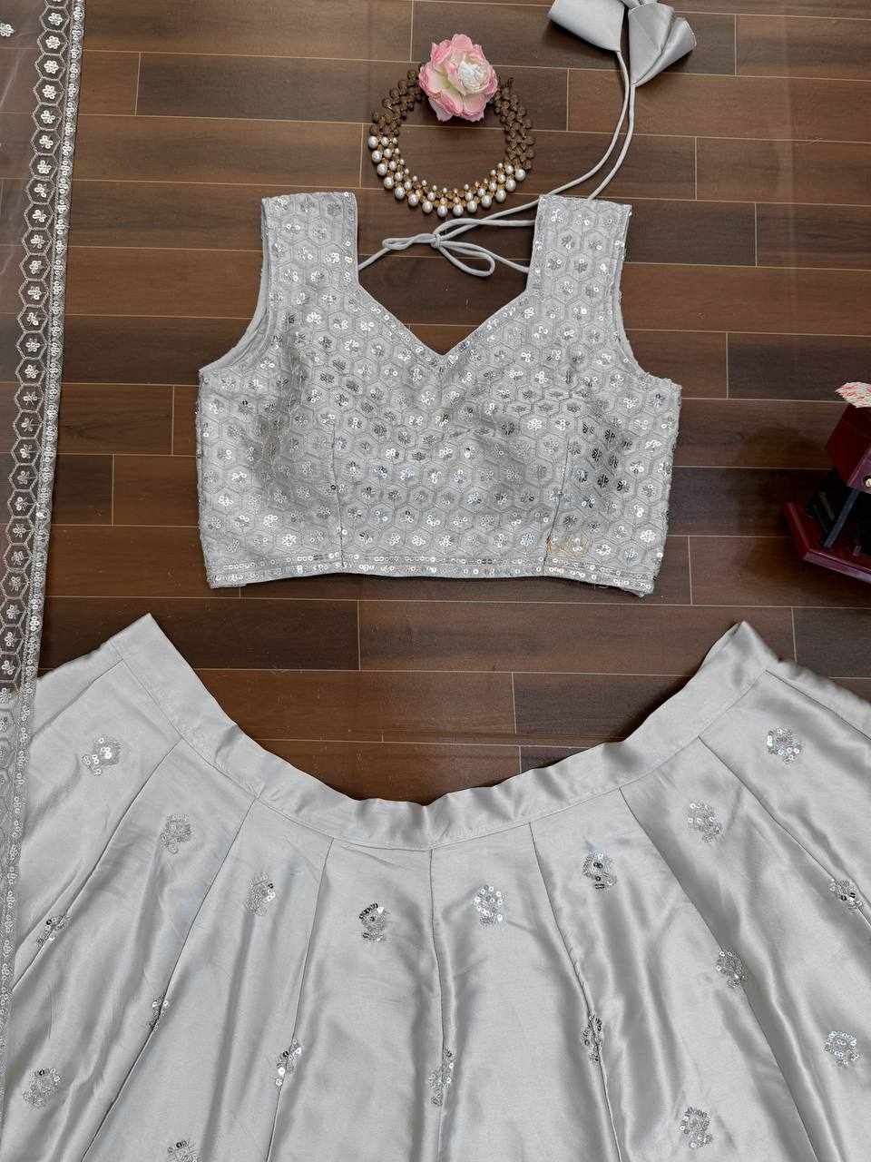 | Name : | QRC 390 Premium Designer Grey party wear Lehenga |
