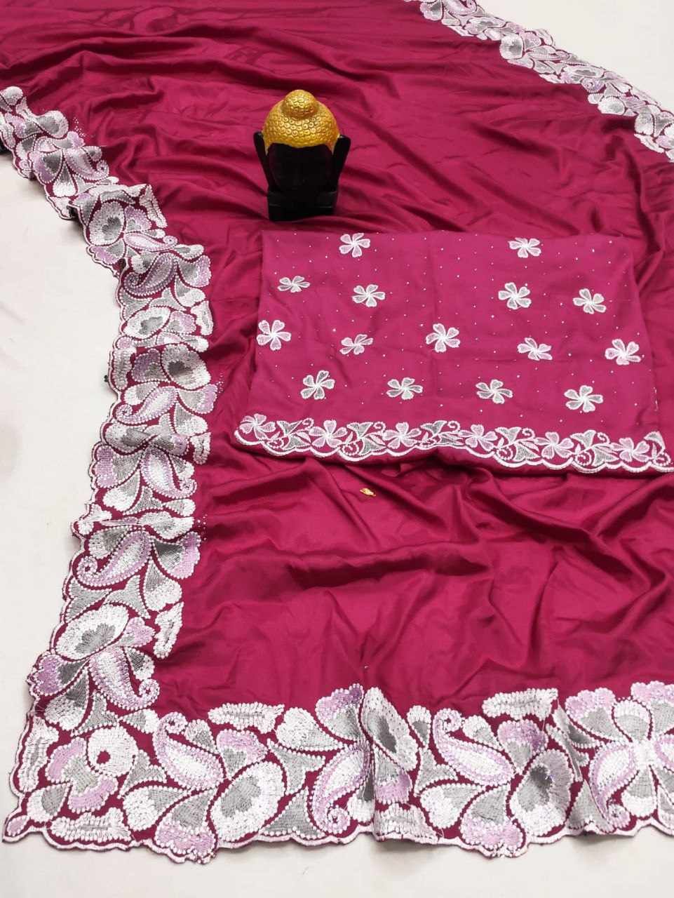 Pure D Natural Soft Satin saree with heavy Embroidery thread and heavy siroski work and cutwork borders