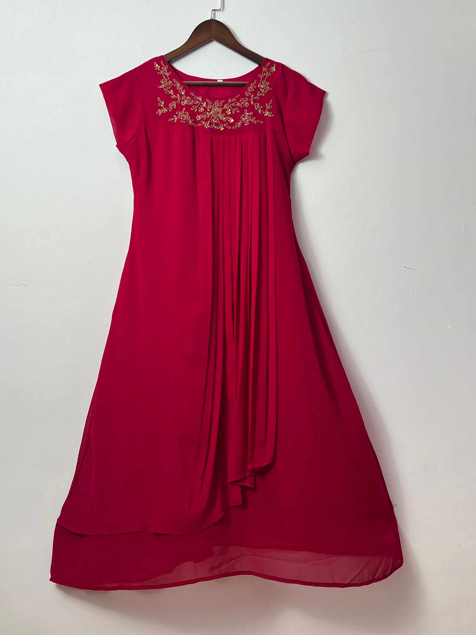 FABRIC - Blooming Georgette Handwork Kurti with Cap Designer Sleeves (Khatli - Maggam Wo